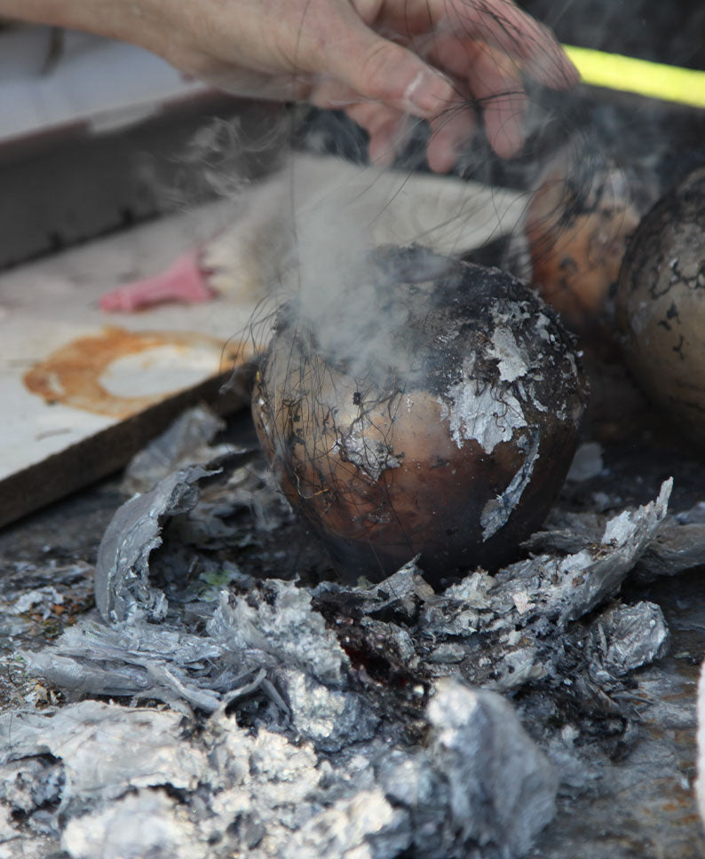 During this period of study, he continued to develop his skills in the Raku firing process concentrating on the difficult to control, dry copper matte glaze.